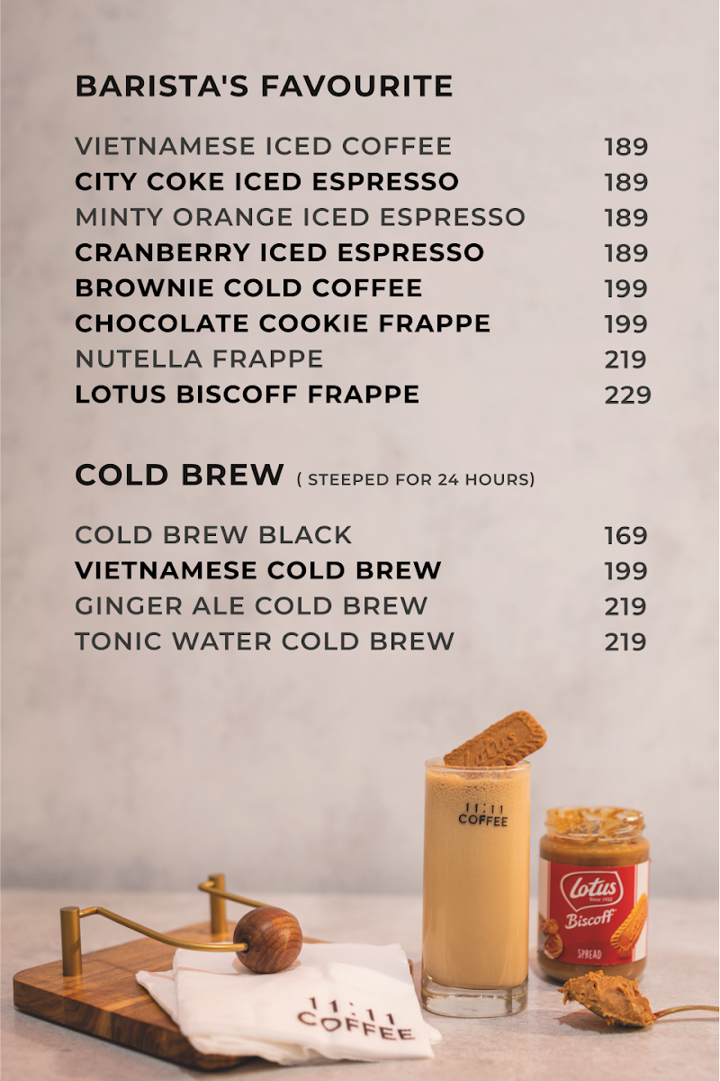 **ABOUT 11:11 Coffee**11:11 Coffee, located in the heart of Indore, offers a curated menu that caters to diverse palates, featuring everything from rich americanos to refreshing iced teas and decadent milkshakes. The cozy ambiance invites patrons to linger, whether they’re working or simply unwinding. Guests rave about the quality of their 100% Arabica coffee, ensuring a luxurious experience with each sip. With an inviting atmosphere, exceptional hospitality, and a blend of comfort and refinement, 11:11 Coffee stands out as a must-visit spot for coffee lovers seeking both flavor and community.